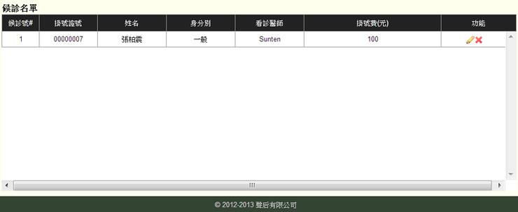 - 最後點選「掛號」,當候診名單產生資料,即完成掛號作業。