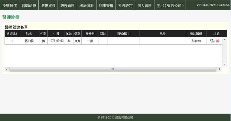 - 醫師候診名單,即會出現掛號候診資料。(若為初診,初診欄會顯示 ★ 符號)