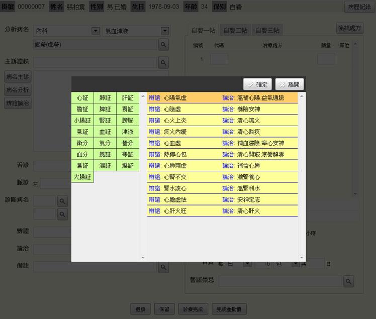 - 辨證論治:顯示資料參考「中醫內科臨床實用手冊」