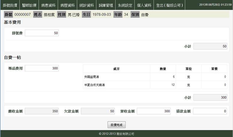 - 完成批價:完成所有看診作業,最後列印出處方收據明細。