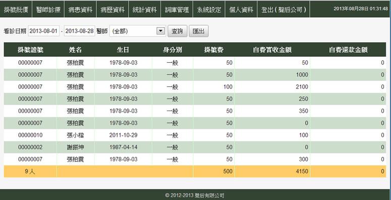 - 選取所要掛號的患者資料,畫面即會帶出該患者的病歷記錄。