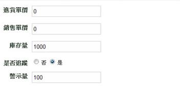 - 設定「庫存量」、「是否追踨」、「警示量」