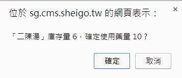 - 當出現上述警告訊息時,請進貨補充庫存量,並避免開立超過庫存量之藥量。